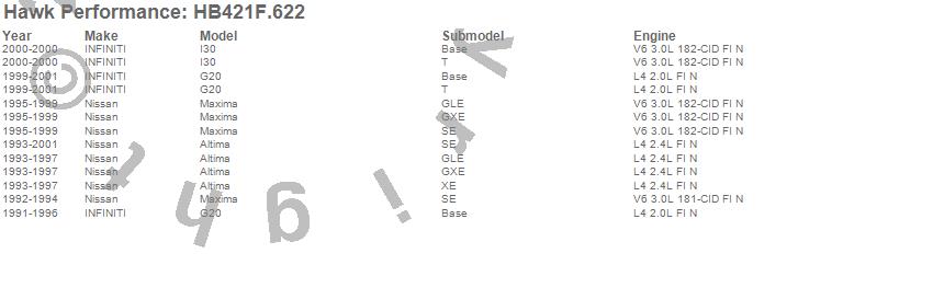 Below is an abreviated list of applications for the Disc Brake Pad.