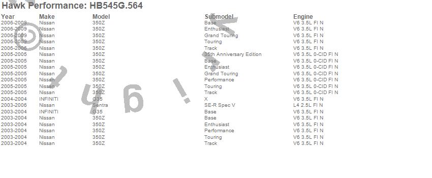 Below is an abreviated list of applications for the Disc Brake Pad.