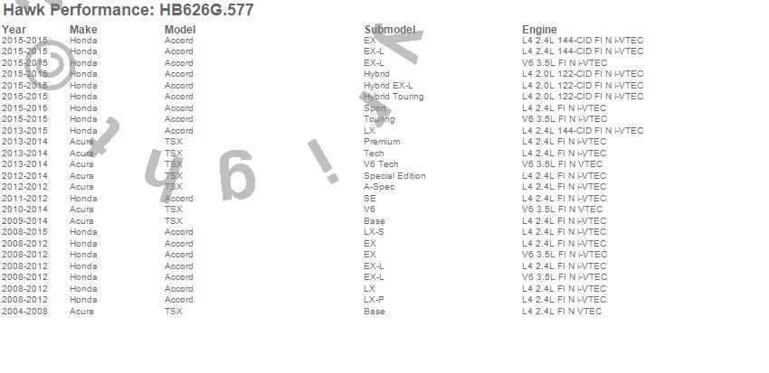 Below is an abreviated list of applications for the Disc Brake Pad.