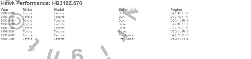 Hawk Performance Disc Brake Pad HB316Z.670 Features: