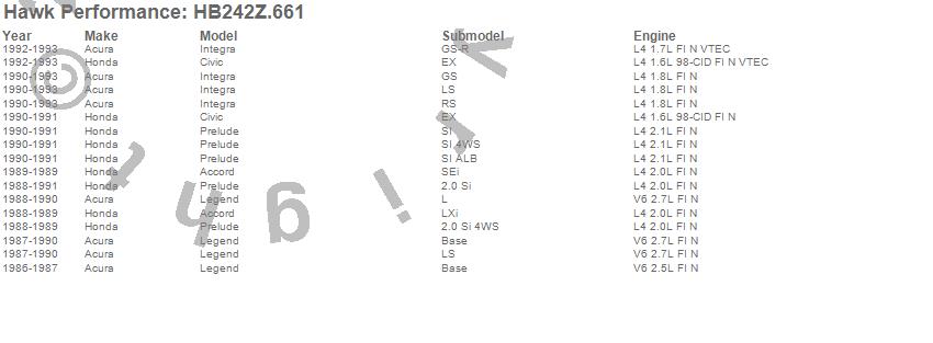 Hawk Performance Disc Brake Pad # HB242Z.661 - Performance Ceramic w/0.661 Thickness