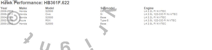 Hawk Performance Disc Brake Pad # HB361F.622 - HPS Performance Street w/0.622 Thickness