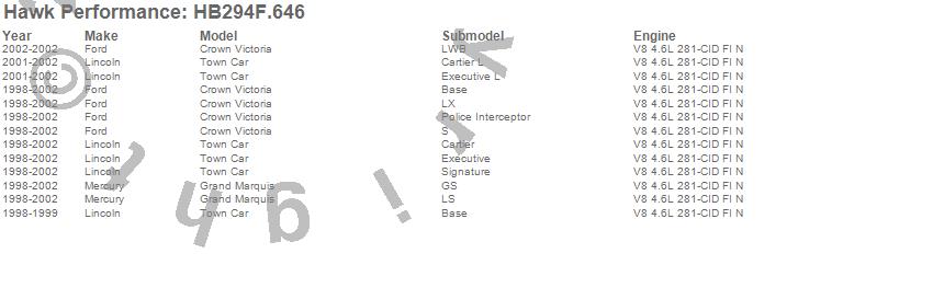 Below is an abreviated list of applications for the Disc Brake Pad.