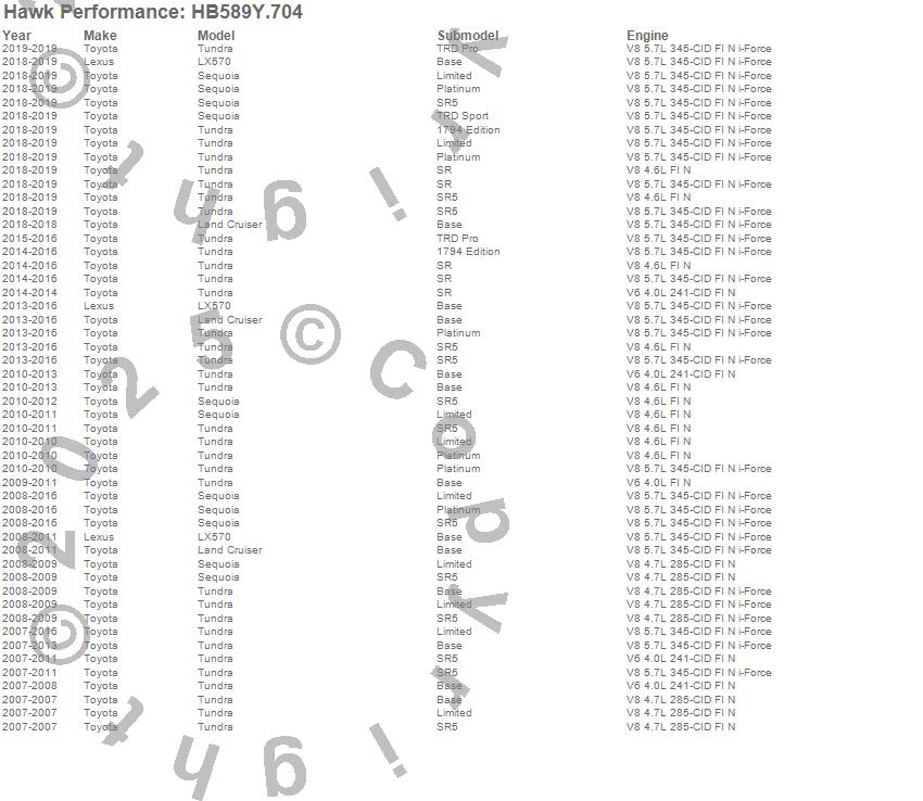Hawk Performance Disc Brake Pad # HB589Y.704 - LTS w/0.704 Thickness
