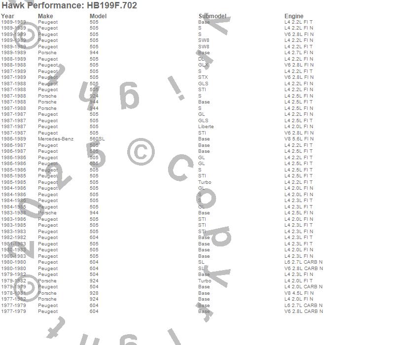 Below is an abreviated list of applications for the Disc Brake Pad.