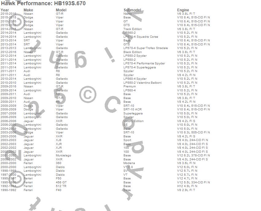 Hawk Performance Disc Brake Pad # HB193S.670 - HT-10 w/0.670 Thickness