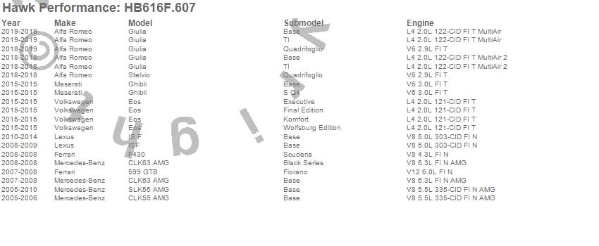 Below is an abreviated list of applications for the Disc Brake Pad.