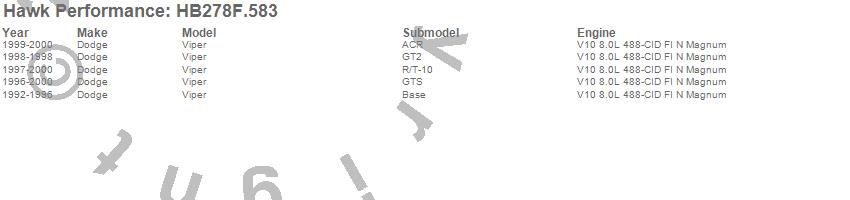 Hawk Performance Disc Brake Pad # HB278F.583 - HPS Performance Street w/0.583 Thickness