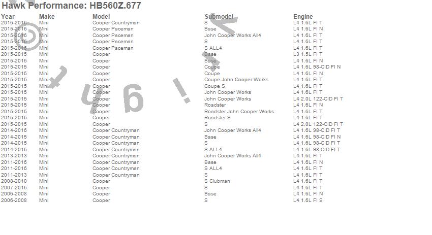 Below is an abreviated list of applications for the Disc Brake Pad.