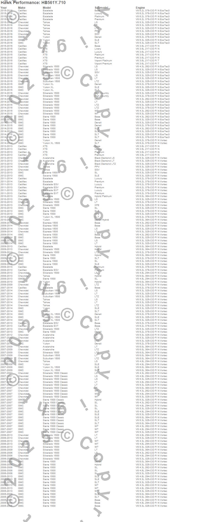Below is an abreviated list of applications for the Disc Brake Pad.