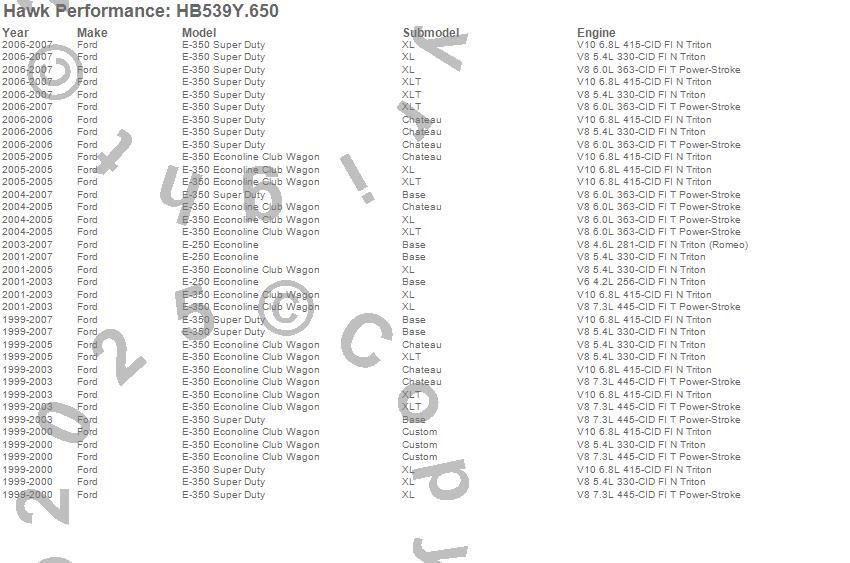 Hawk Performance Disc Brake Pad # HB539Y.650 - LTS w/0.650 Thickness