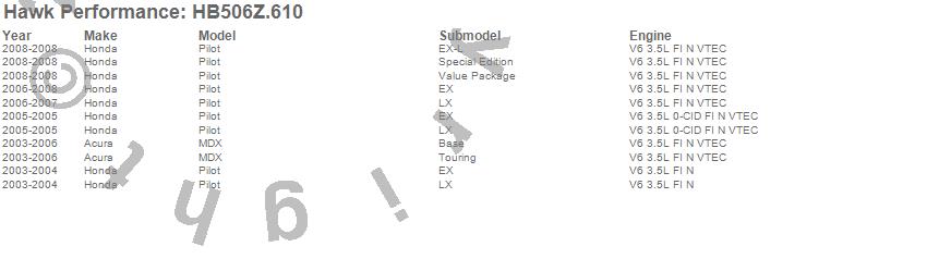 Hawk Performance Disc Brake Pad # HB506Z.610 - Performance Ceramic w/0.610 Thickness
