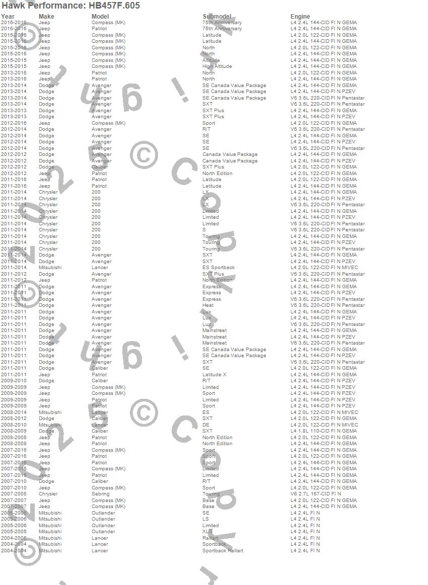 Below is an abreviated list of applications for the Disc Brake Pad.