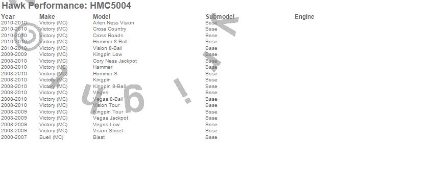 Below is an abreviated list of applications for the Sintered Metallic Disc Brake Pads.