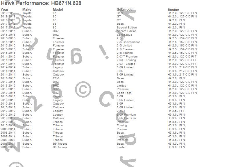 Hawk Performance Disc Brake Pad # HB671N.628 - HP Plus w/0.628 Thickness