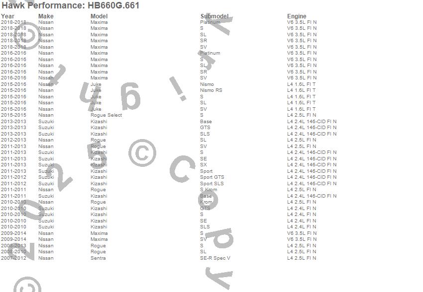 Hawk Performance Disc Brake Pad # HB660G.661 - DTC-60 w/0.661 Thickness