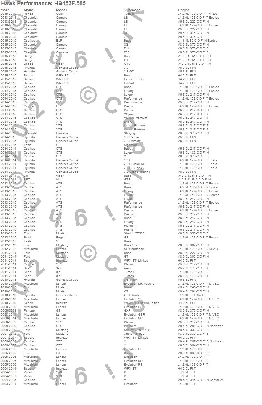 Hawk Performance Disc Brake Pad # HB453F.585 - HPS Performance Street w/0.585 Thickness