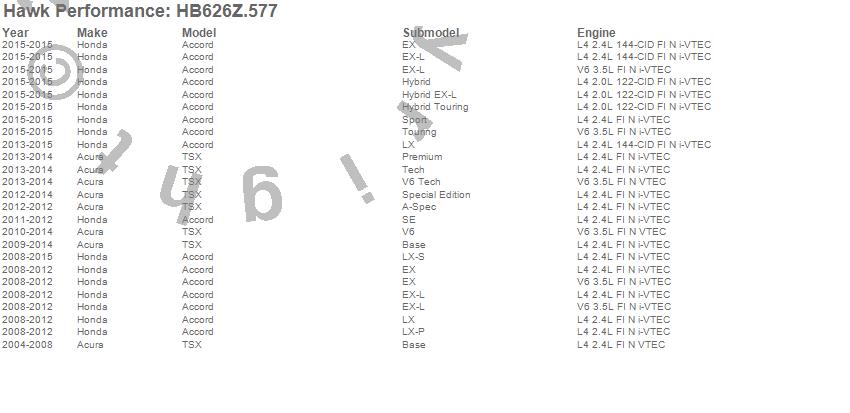 Hawk Performance Disc Brake Pad # HB626Z.577 - Performance Ceramic w/0.577 Thickness