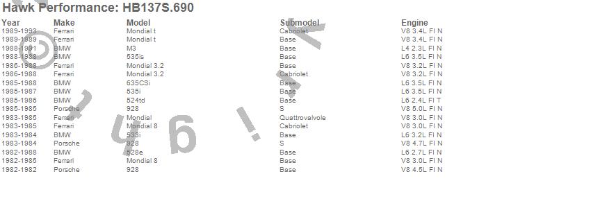 Below is an abreviated list of applications for the Disc Brake Pad.