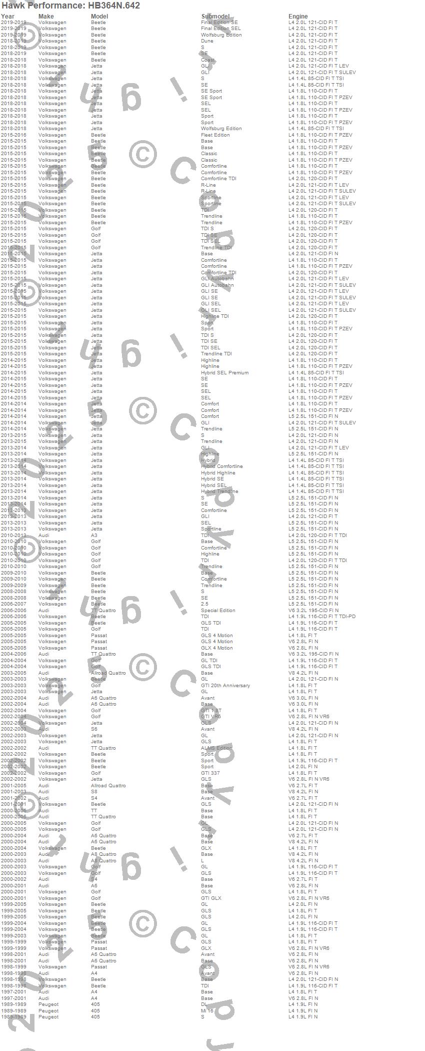 405, A3, A4, A6, A6 Quattro, A8 Quattro, Allroad Quattro, Beetle, Golf, Jetta, Passat, S4, S6, S8, TT, TT Quattro, Audi, Peugeot, Volkswagen, 2015 more…