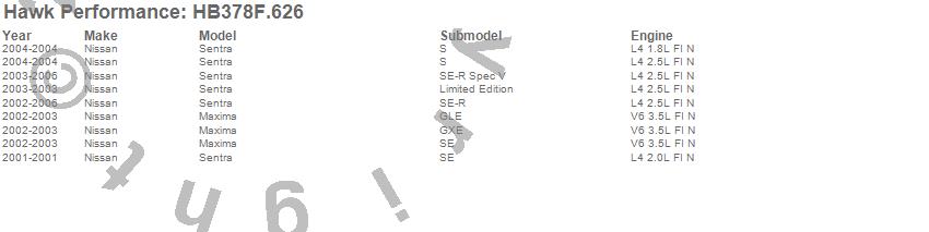 Hawk Performance Disc Brake Pad # HB378F.626 - HPS Performance Street w/0.626 Thickness