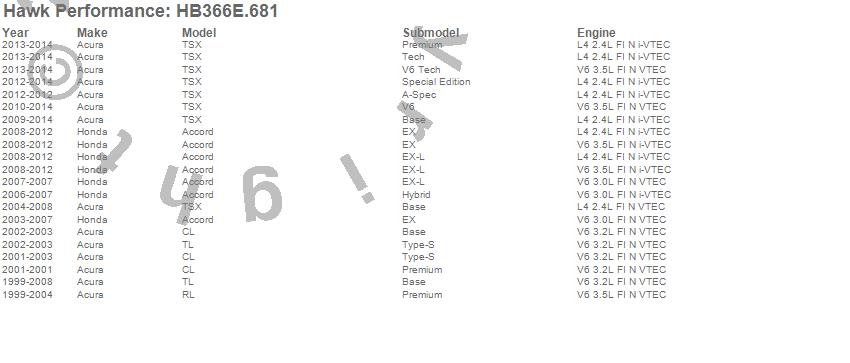 Hawk Performance Disc Brake Pad # HB366E.681 - Blue 9012 w/0.681 Thickness