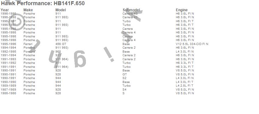 Below is an abreviated list of applications for the Disc Brake Pad.