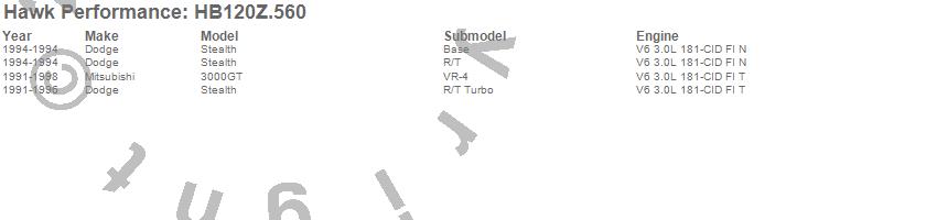 Hawk Performance Disc Brake Pad # HB120Z.560 - Performance Ceramic w/0.560 Thickness