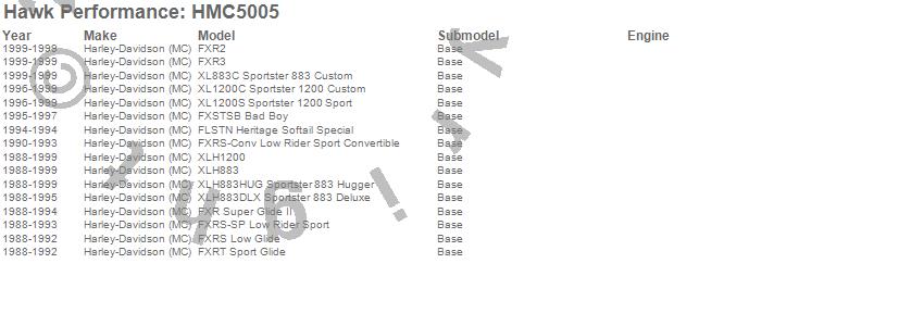 Below is an abreviated list of applications for the Sintered Metallic Disc Brake Pads.