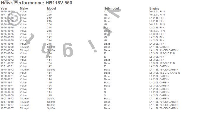 Below is an abreviated list of applications for the Disc Brake Pad.
