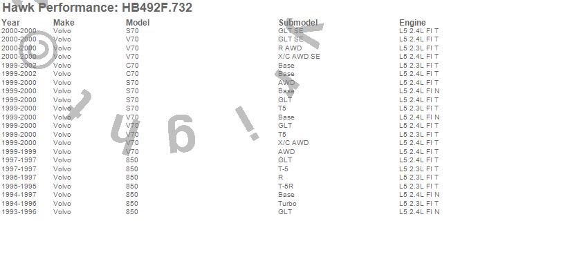Below is an abreviated list of applications for the Disc Brake Pad.