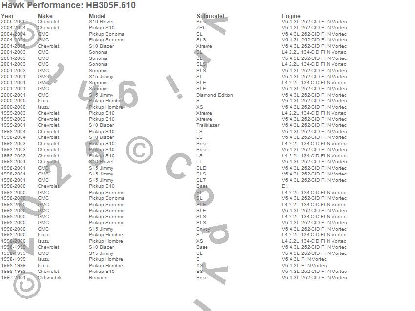 Below is an abreviated list of applications for the Disc Brake Pad.
