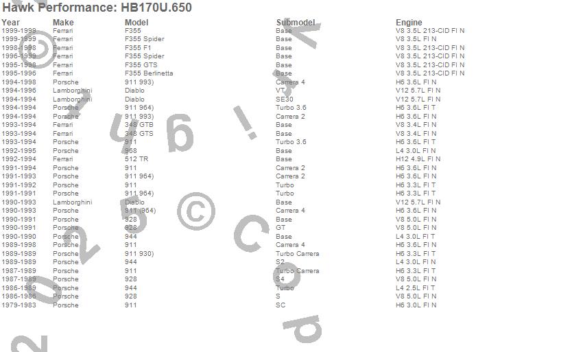 Below is an abreviated list of applications for the Disc Brake Pad.