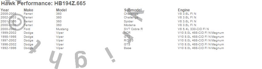 Hawk Performance Disc Brake Pad # HB194Z.665 - Performance Ceramic w/0.665 Thickness
