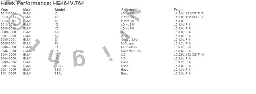 Below is an abreviated list of applications for the Disc Brake Pad.
