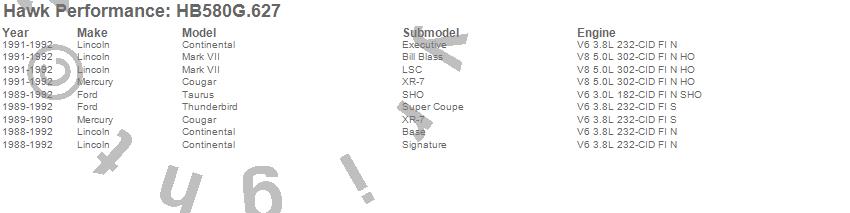 Below is an abreviated list of applications for the Disc Brake Pad.