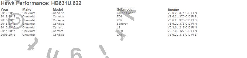 Below is an abreviated list of applications for the Disc Brake Pad. Camaro, Corvette, Chevrolet, 2016, 2015, 2013, 2012, 2011, 2010, 2009 more…