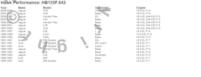 Below is an abreviated list of applications for the Disc Brake Pad.