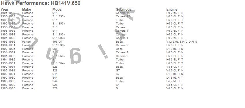 Below is an abreviated list of applications for the Disc Brake Pad.