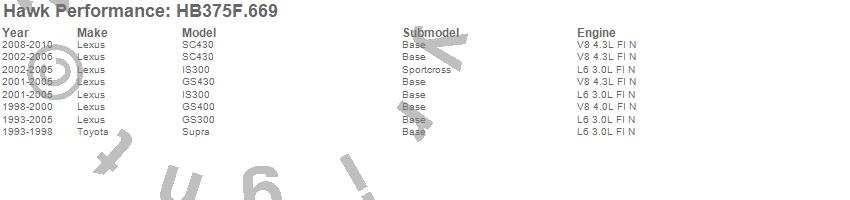Below is an abreviated list of applications for the Disc Brake Pad.
