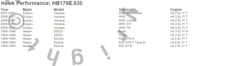 Below is an abreviated list of applications for the Disc Brake Pad.
