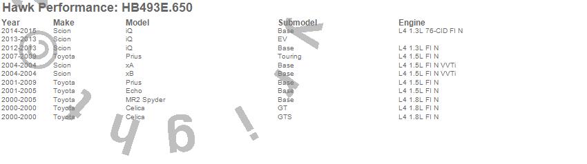 Below is an abreviated list of applications for the Disc Brake Pad.