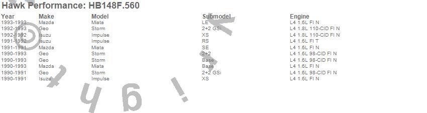 Below is an abreviated list of applications for the Disc Brake Pad.