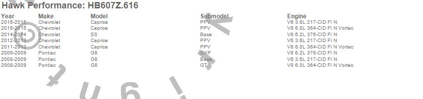 Below is an abreviated list of applications for the Disc Brake Pad.