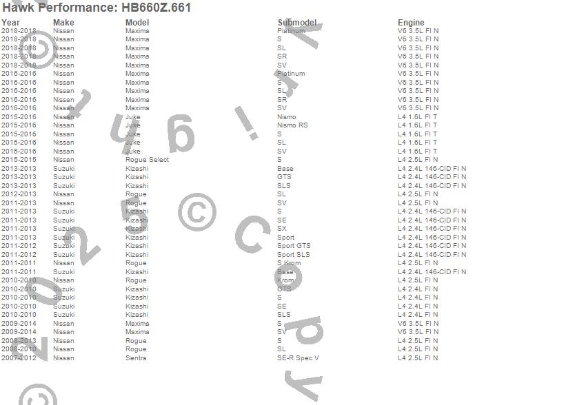 Hawk Performance Disc Brake Pad # HB660Z.661 - Performance Ceramic w/0.661 Thickness