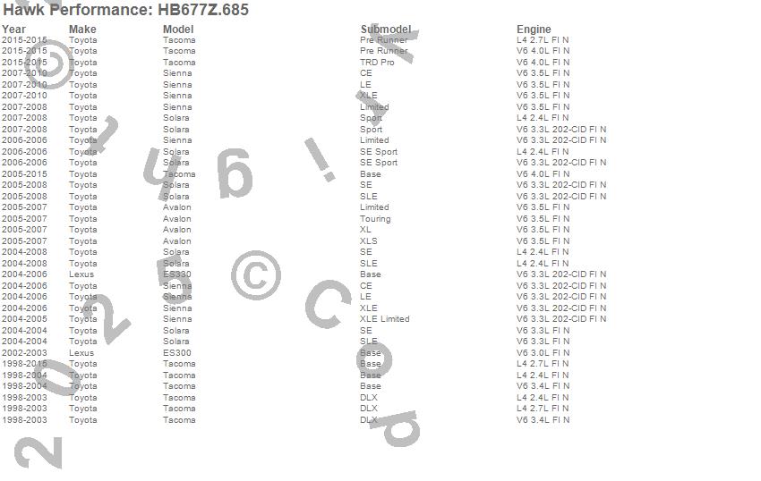 Hawk Performance Disc Brake Pad # HB677Z.685 - Performance Ceramic w/0.685 Thickness