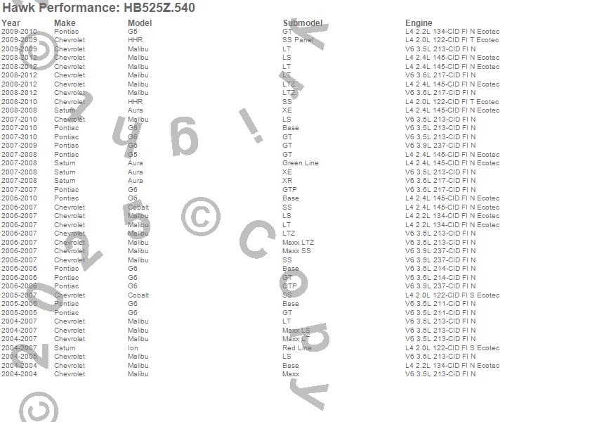 Hawk Performance Disc Brake Pad # HB525Z.540 - Performance Ceramic w/0.540 Thickness