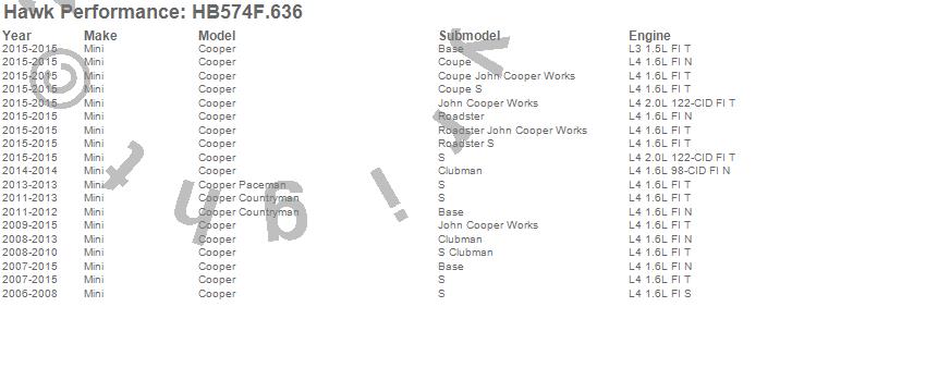 Below is an abreviated list of applications for the Disc Brake Pad.