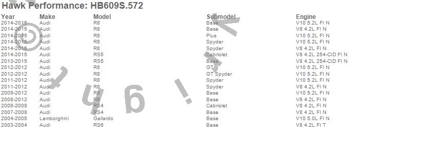 Below is an abreviated list of applications for the Disc Brake Pad.