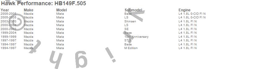 Hawk Performance Disc Brake Pad # HB149F.505 - HPS Performance Street w/0.505 Thickness